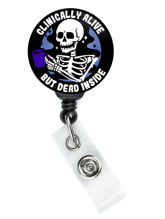 Skeleton Coffee Clinically Alive But Dead Inside Badge Reel