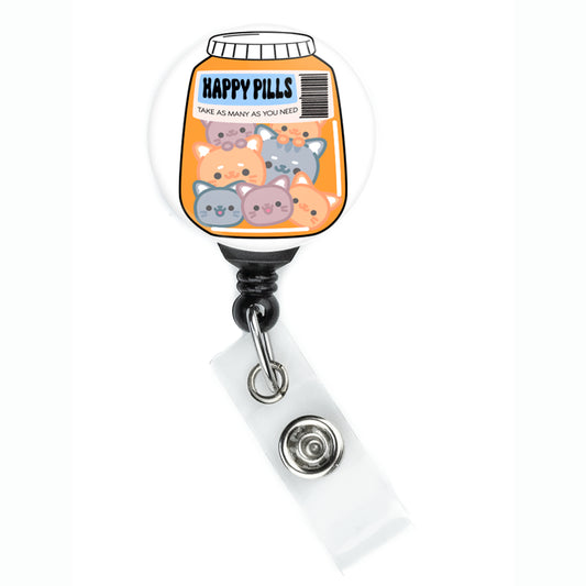 Happy Kitty Cat Pills Badge Reel