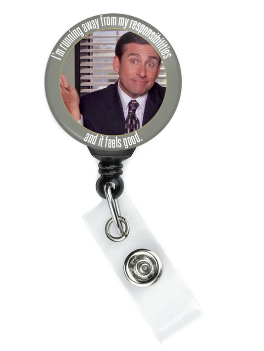 The Office Michael Scott Running Away From My Responsibilities Meme Badge Reel