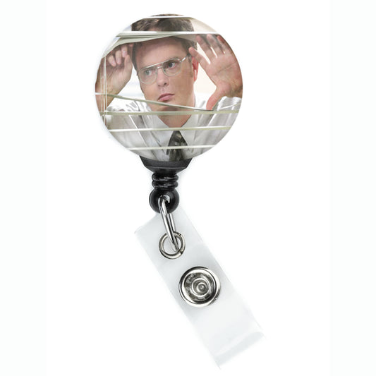 The Office Dwight Shrute Peeping Blinds Meme Badge Reel