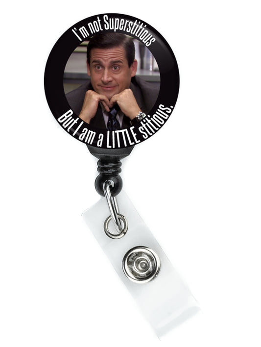 The Office Michael Scott I'm Not Superstitious But I Am A Little Stitious Badge Reel
