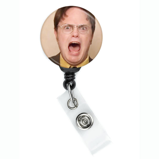 The Office Dwight Shrute Screaming Close Up Face Meme Badge Reel