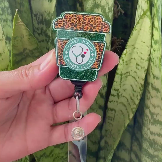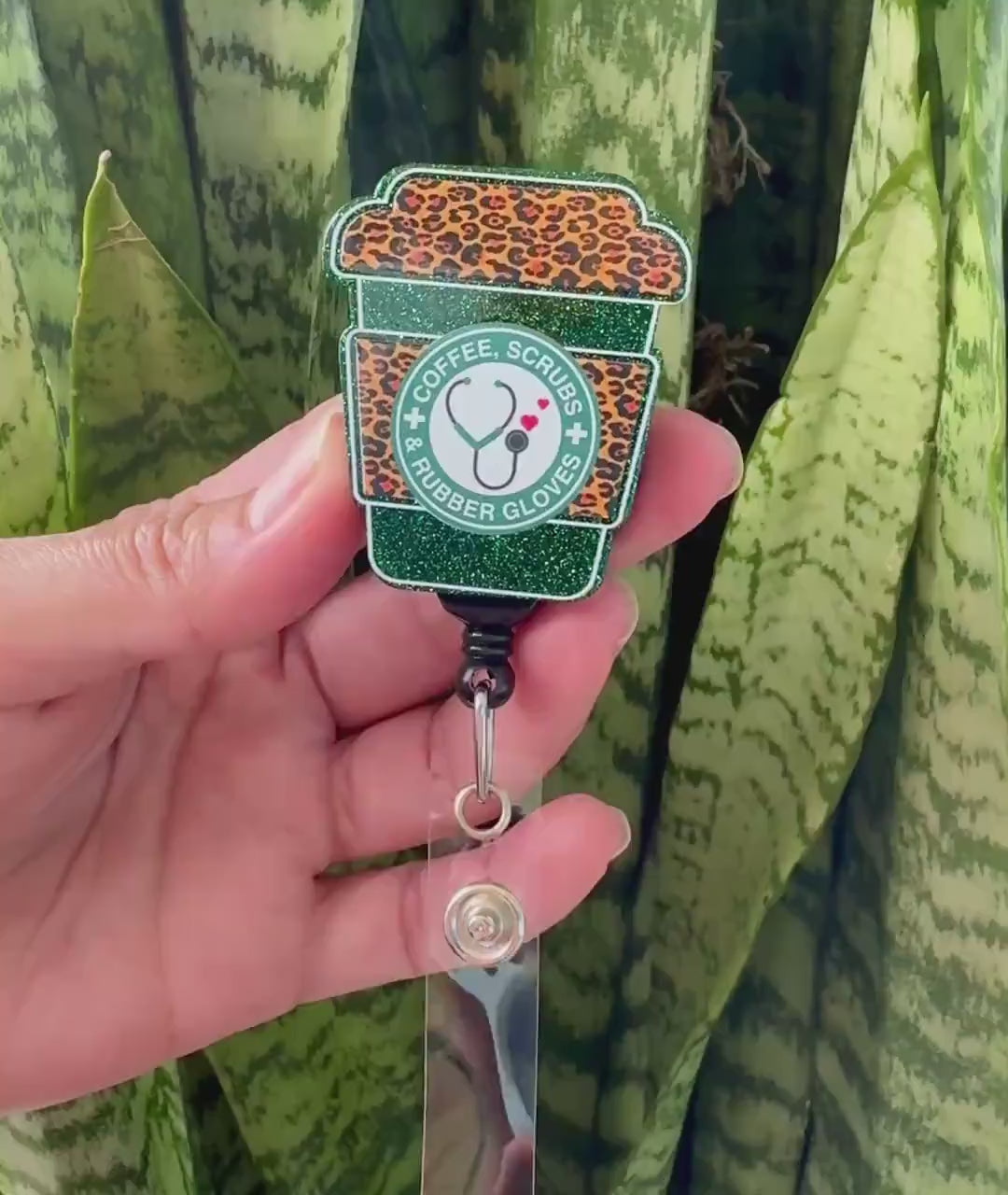 Coffee Scrubs Rubber Gloves Nurse Badge Reel ID Badge Holder Nurse Gift Nurse Badge Holder Cute ID Reel