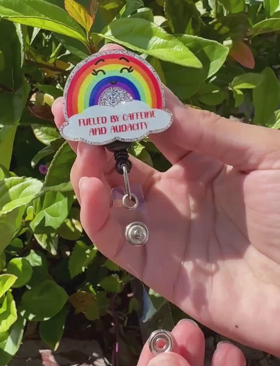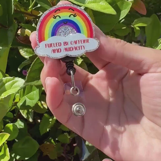 Funny Acrylic Badge Reel Cute Fueled By Caffeine and Audacity Rainbow Nurse Badge Reel ID Badge Holder Nurse Gift Nurse Badge ID