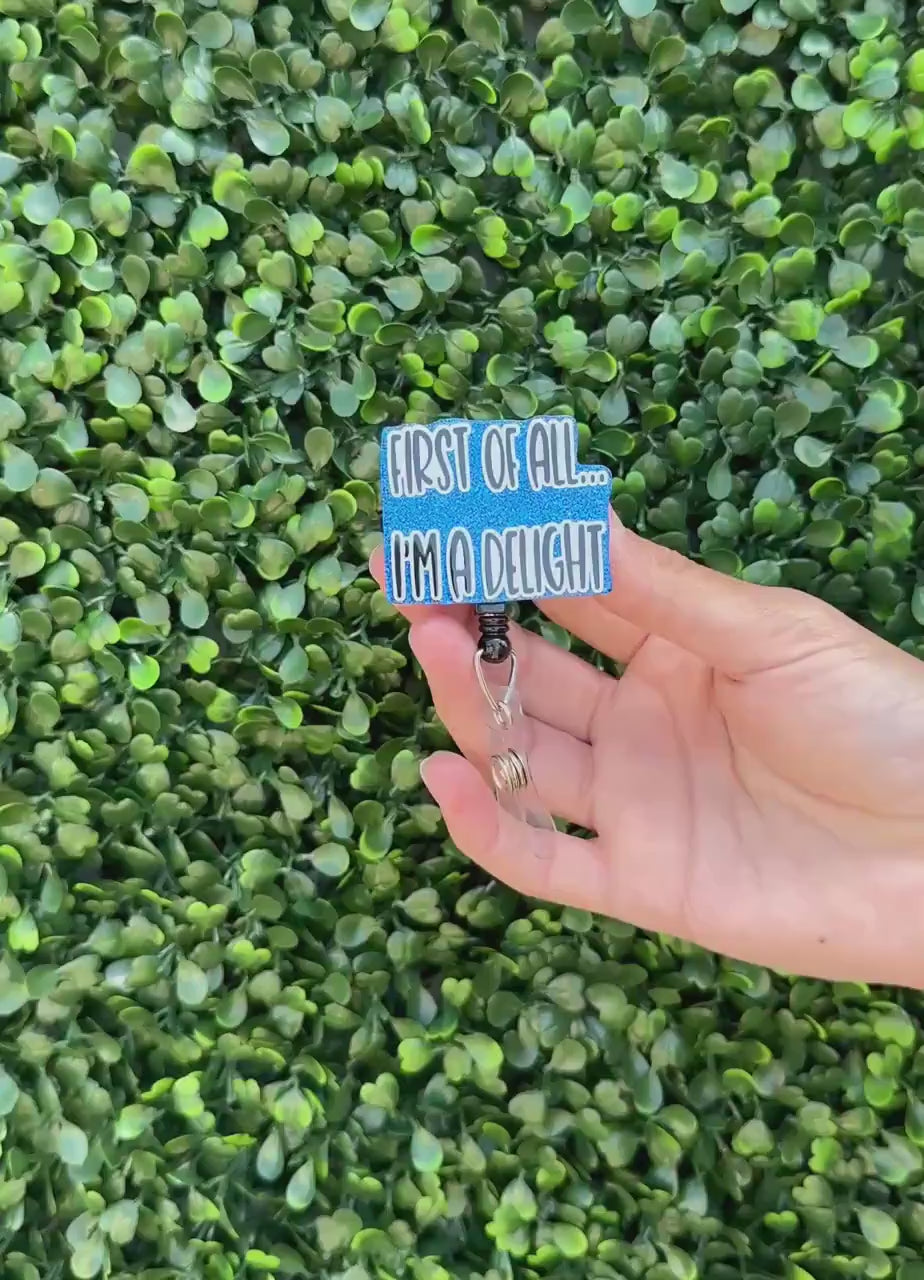 Funny Acrylic Badge Reel First Of All I'm A Delight Nurse Badge Reel ID Badge Holder Nurse Gift Nurse Badge Holder Cute ID Reel