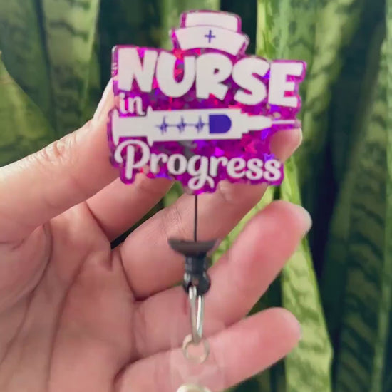Funny Acrylic Badge Reel Nurse in Progress Pink Nurse Badge Reel ID Badge Holder Nurse Gift Nurse Badge Holder Cute ID Reel