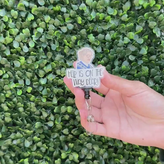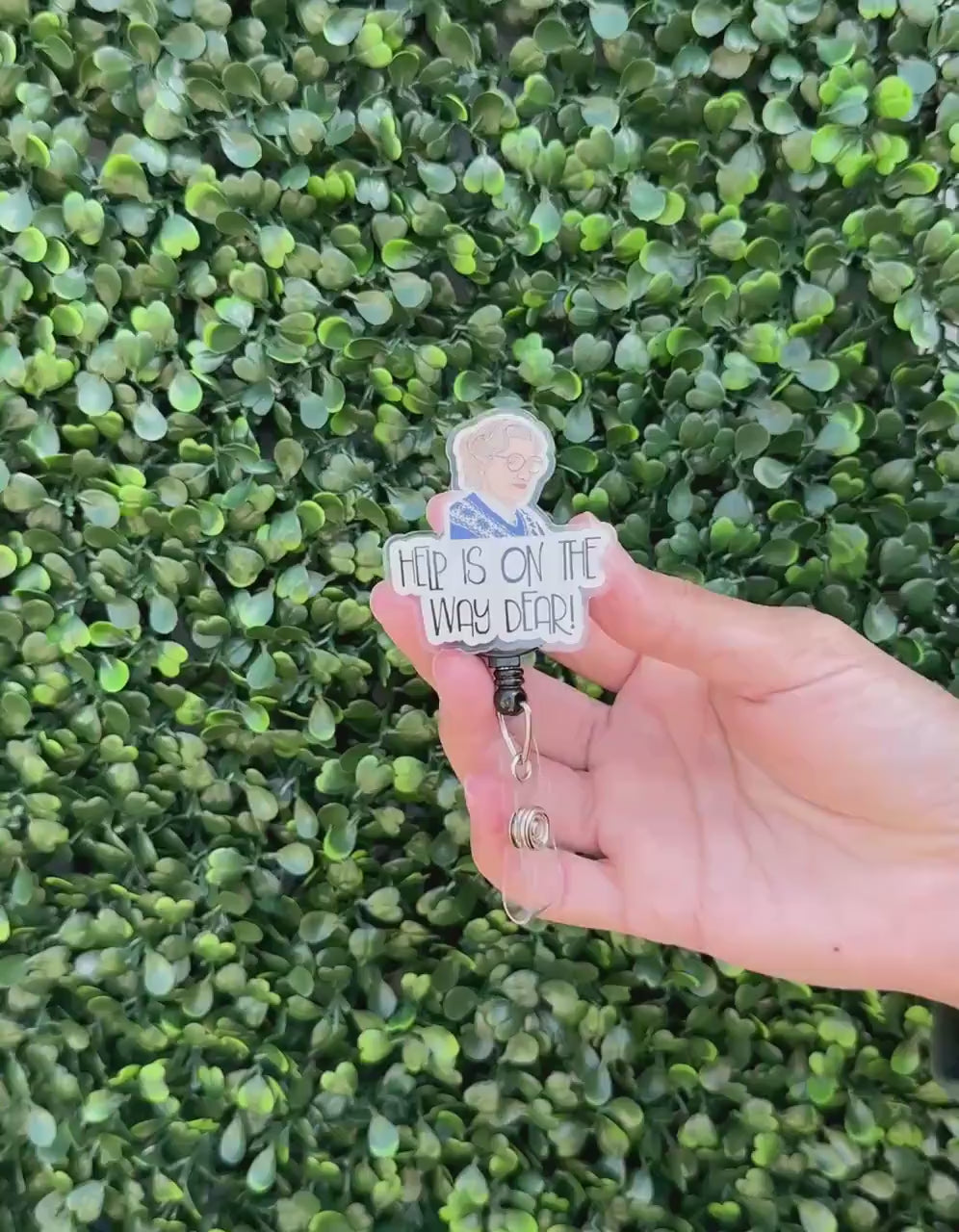 Funny Badge Reel Mrs Doubtfire Help Is On The Way Dear Badge Clip Acrylic Clear Cute Nurse Badge Reel ID Badge Holder Nurse Gift