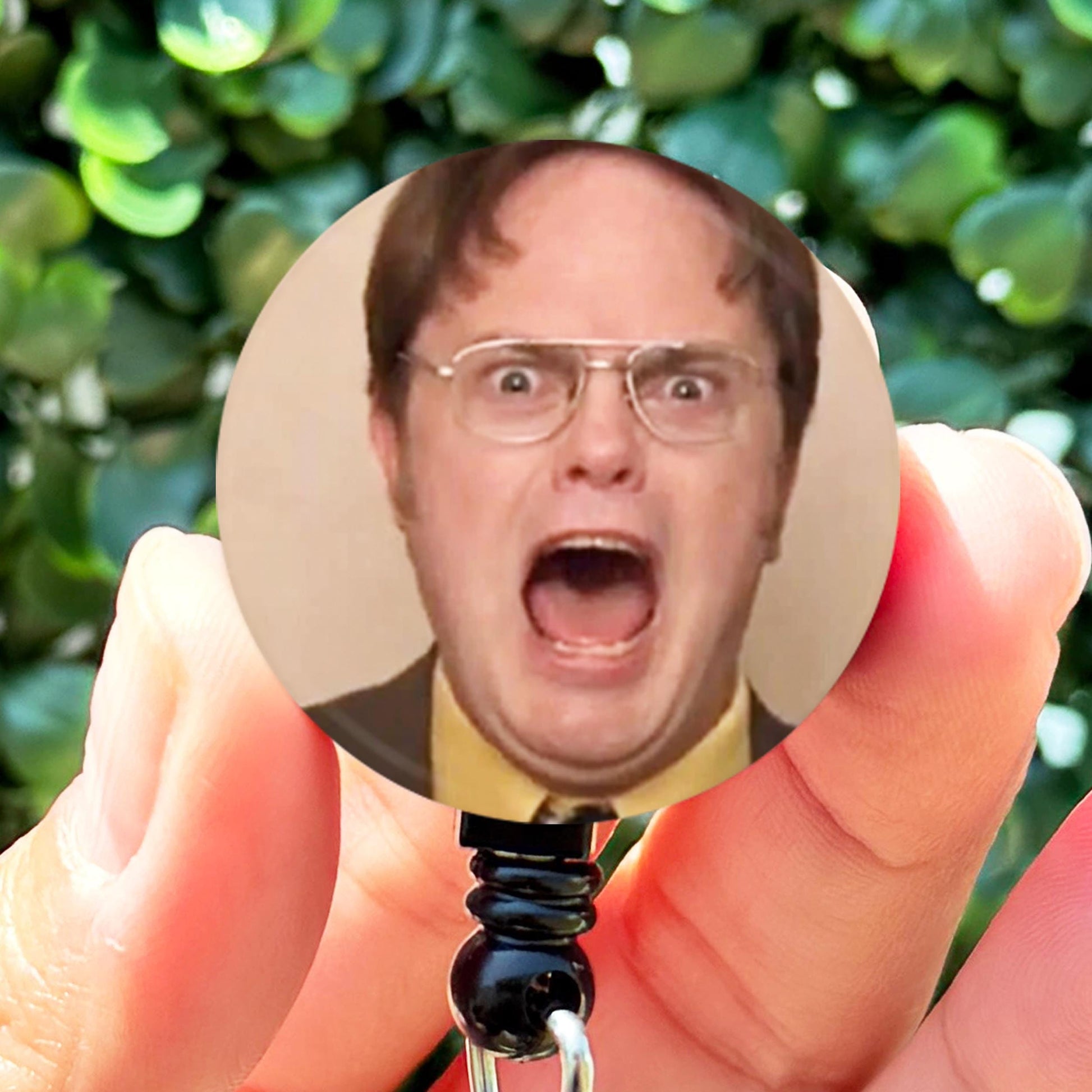 The Office Dwight Shrute Screaming Close Up Face Meme ID Badge Holder
